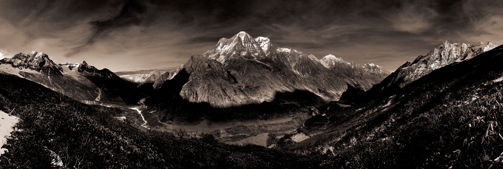 One of our earliest adventures off the beaten track, with my guys Purna and Ramesh, to this vista above the village of Sama. We climbed a wooded hillside onto a ridge that crested treeline and gave views across the valley, revealing the Kutang Himalaya basking in the rapidly setting sun.